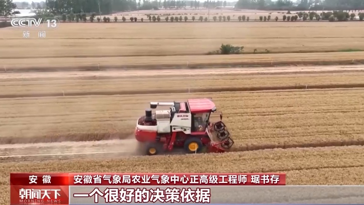 安徽省景象形象局农业景象形象核心正高级工程师 琚书存:我们提前5天就制做了基于县域精细化的农机适宜度收成的办事产物,预测全省将遇较着的降水过程,这为农业部分精准安排农机,为农机手跨区功课供给了一个很好的决策根据。
